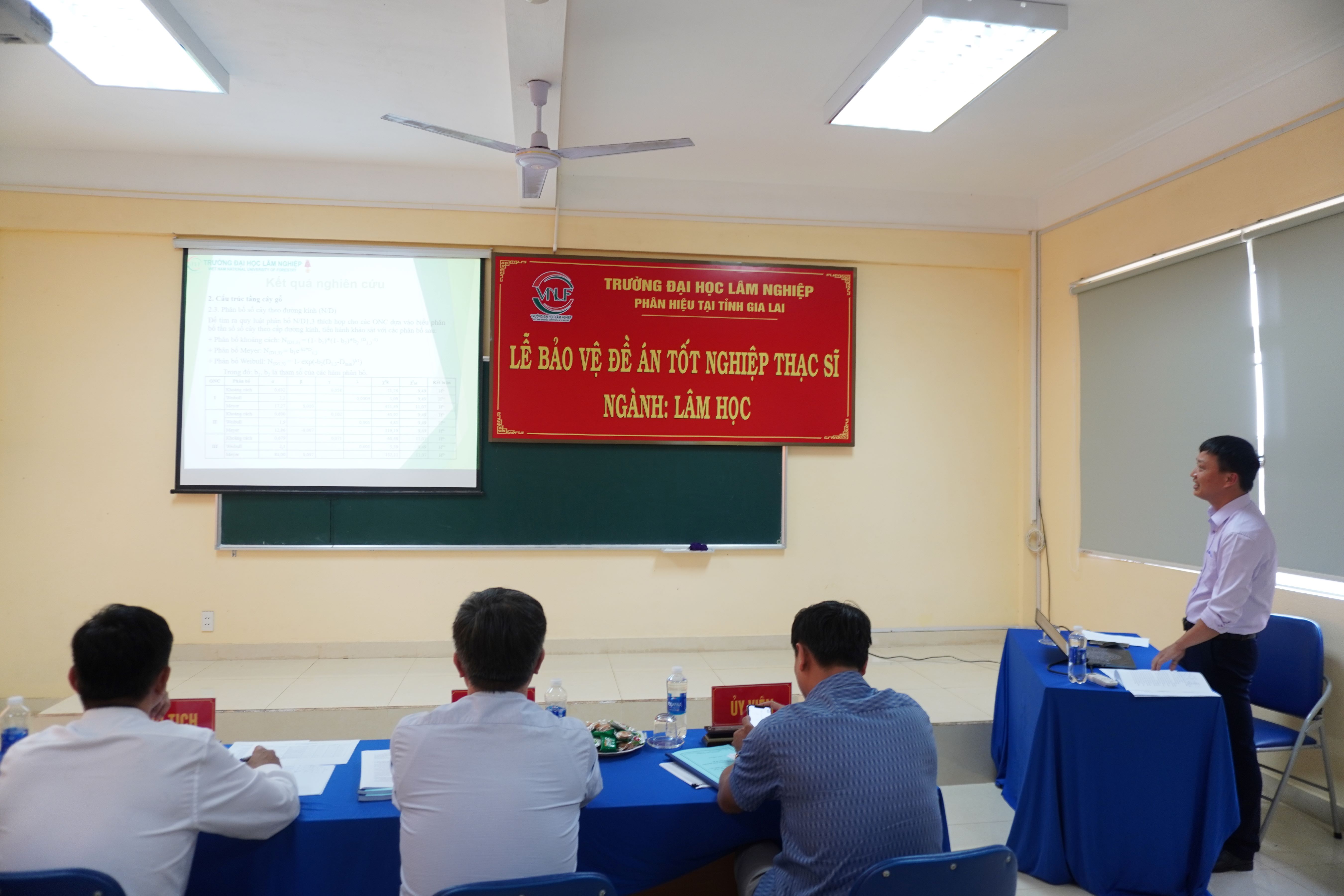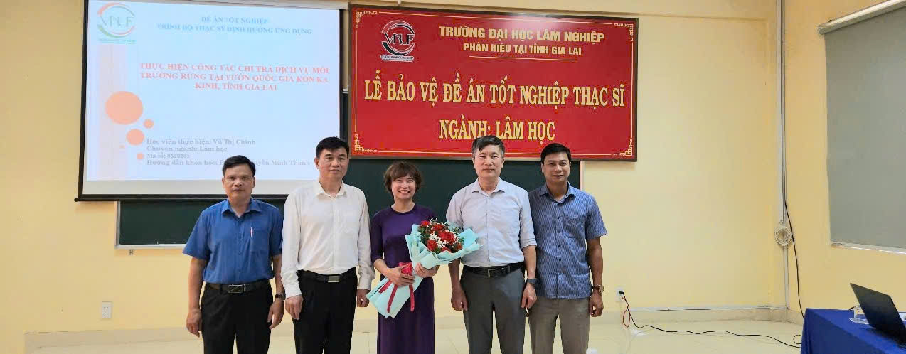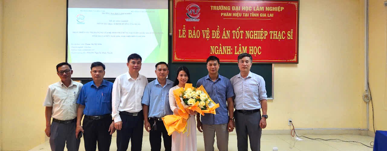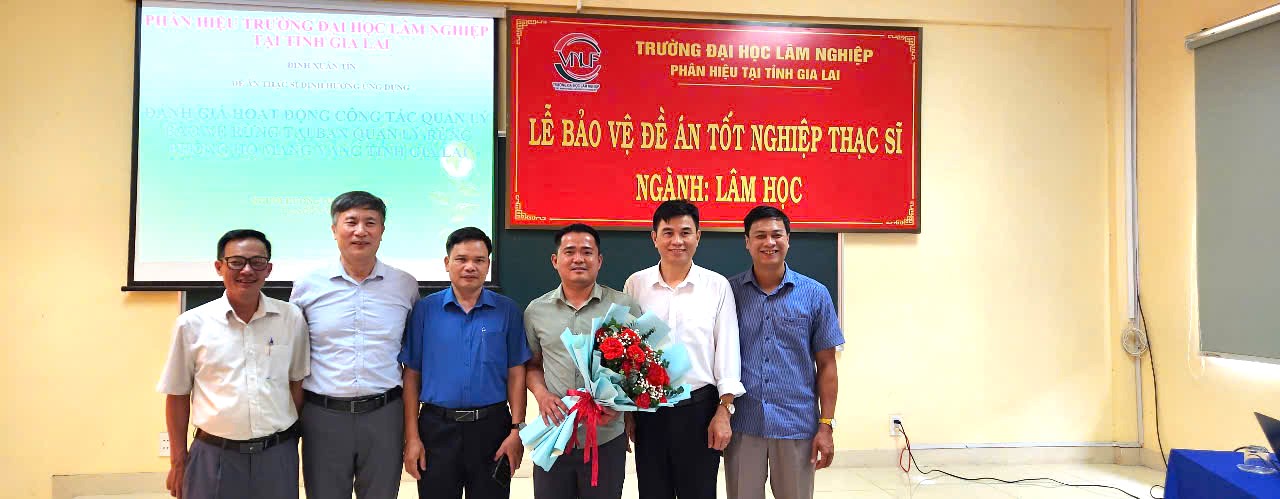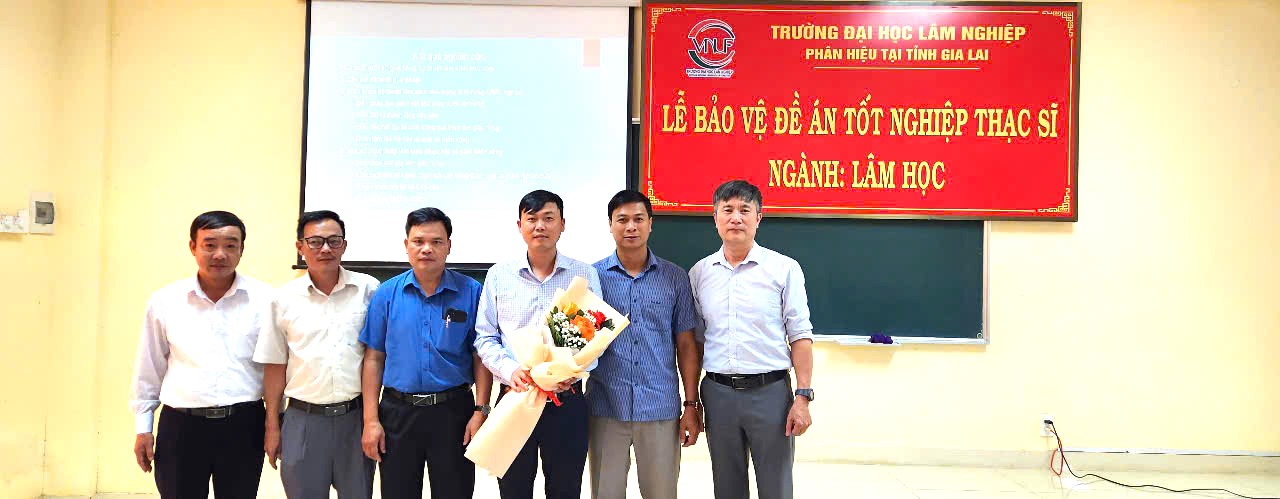 Ngày 05/4/2025, Trường Đại học Lâm nghiệp đã long trọng tổ chức Lễ bảo vệ Đề án tốt nghiệp thạc sĩ cho 08 học viên khóa K30B chuyên ngành Lâm học tại Giảng đường G1 - Phân hiệu Trường Đại học Lâm nghiệp tại tỉnh Gia Lai.