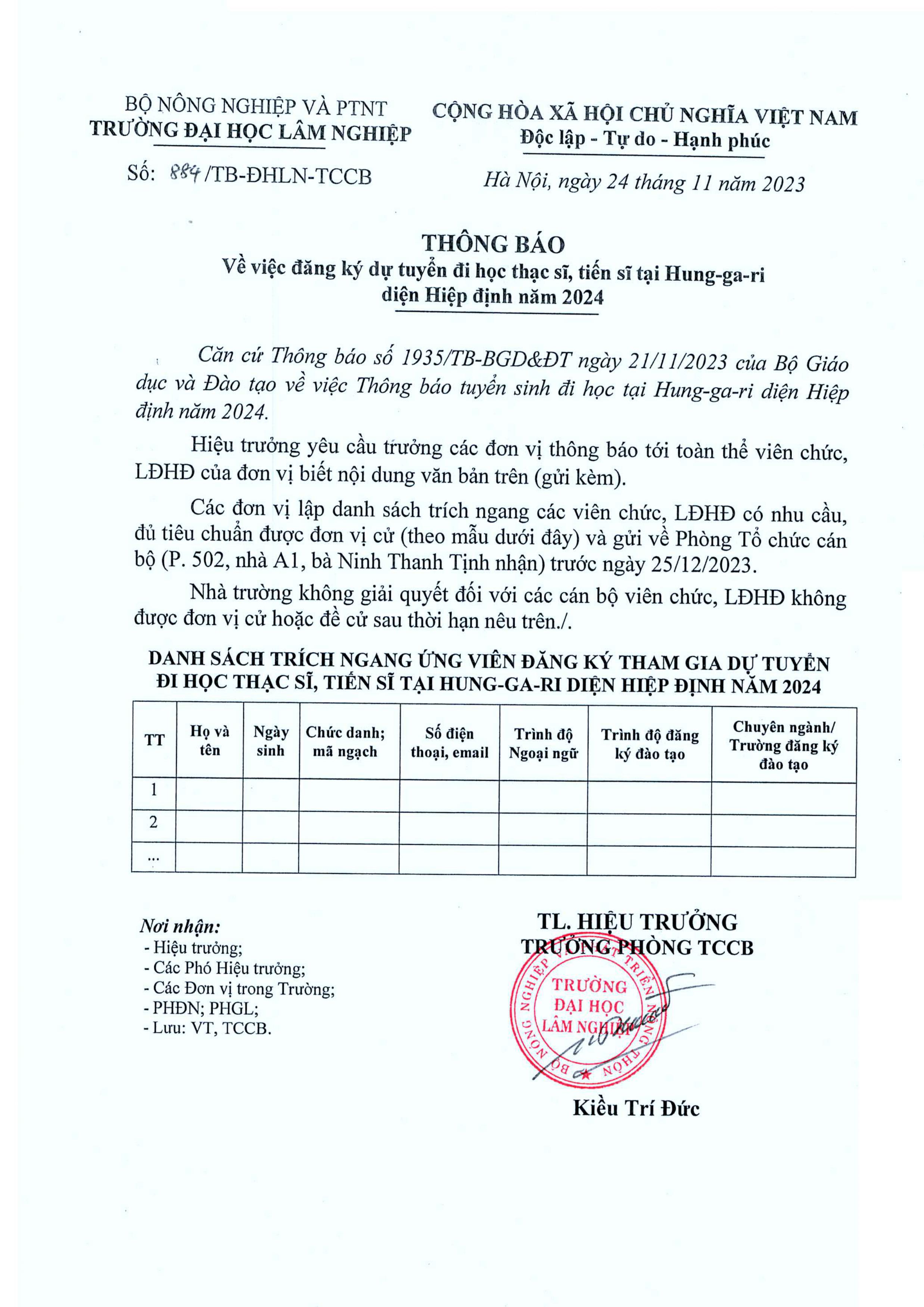 Thông báo đăng ký dự tuyển đi học thạc sĩ, tiến sĩ tại Hung-ga-ri diện Hiệp định năm 2024