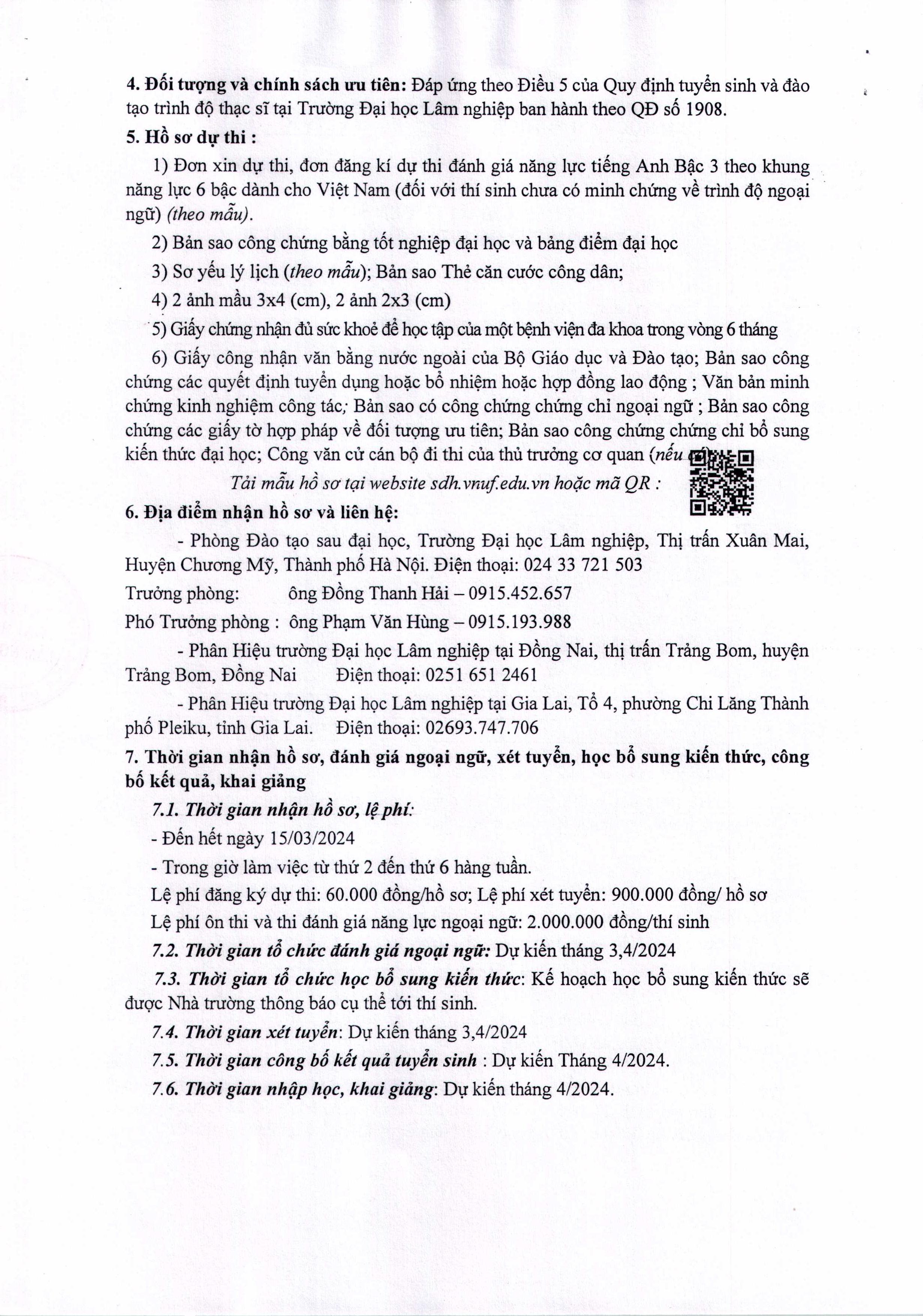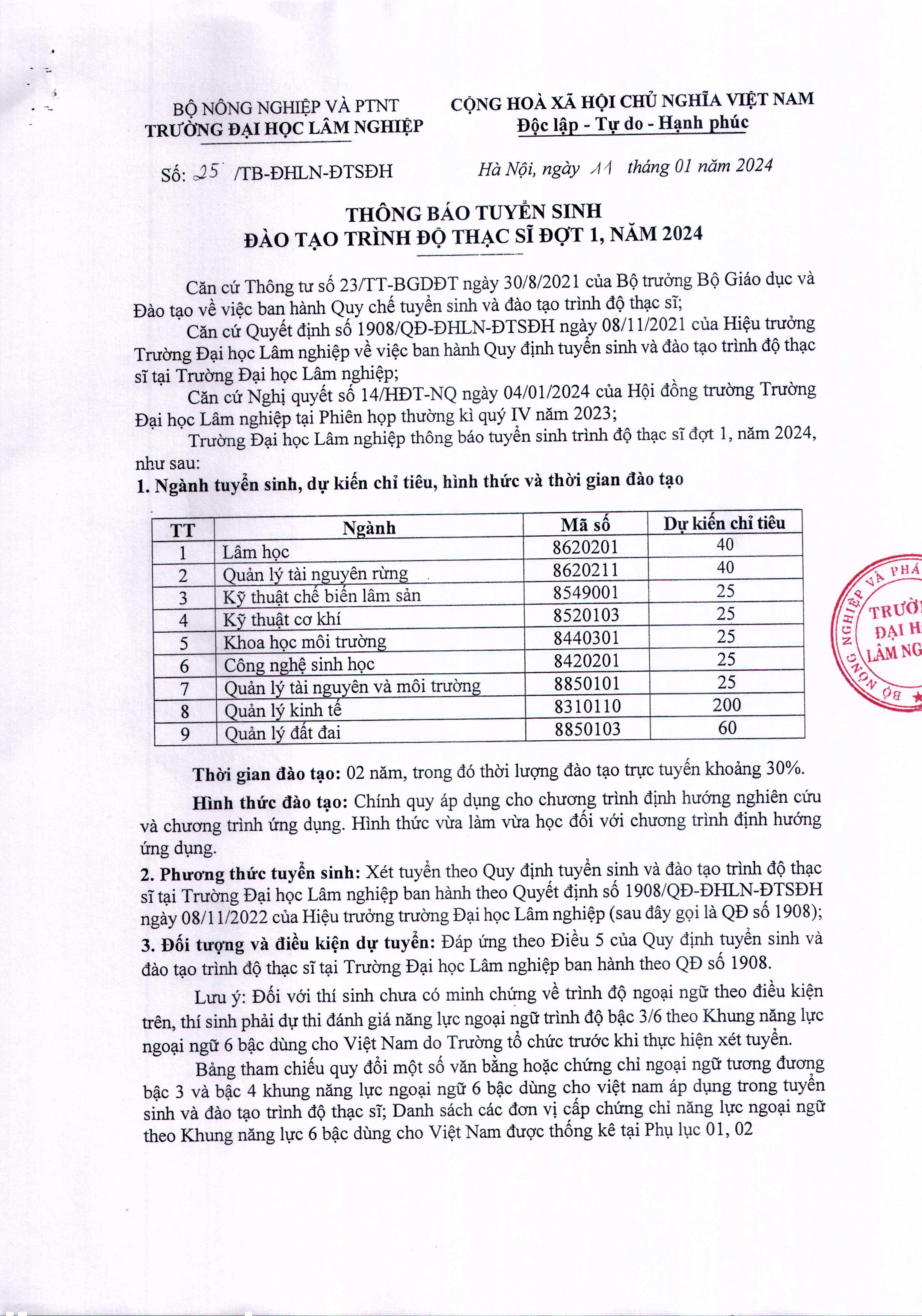Thông báo tuyển sinh đào tạo trình độ Thạc sĩ đợt 1 năm 2024