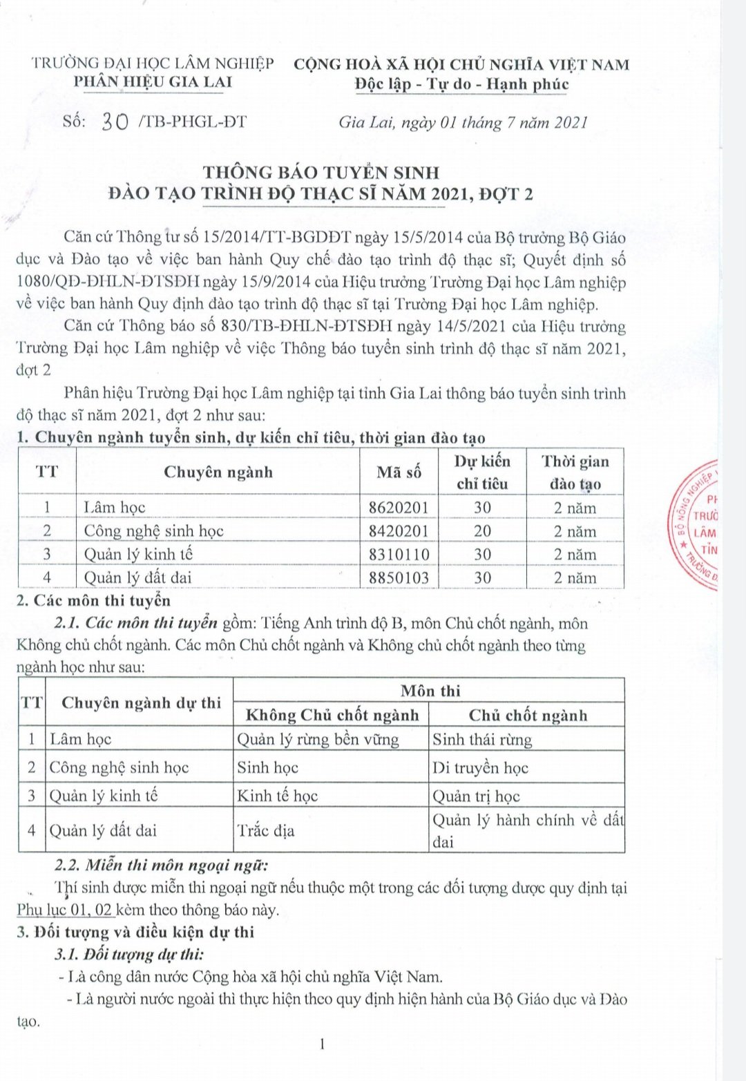 Thông báo tuyển sinh đạo tạo trình độ thạc sĩ năm 2021 đợt 2