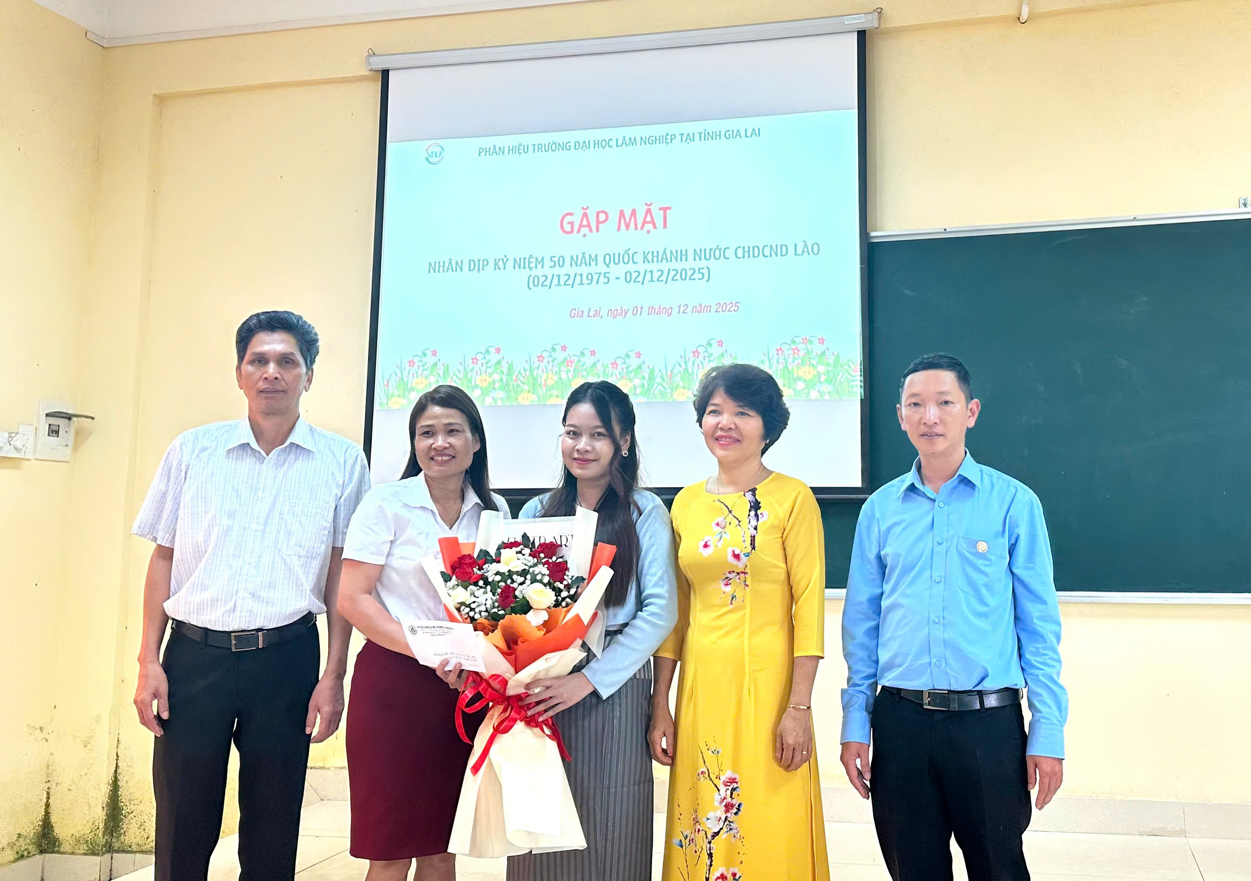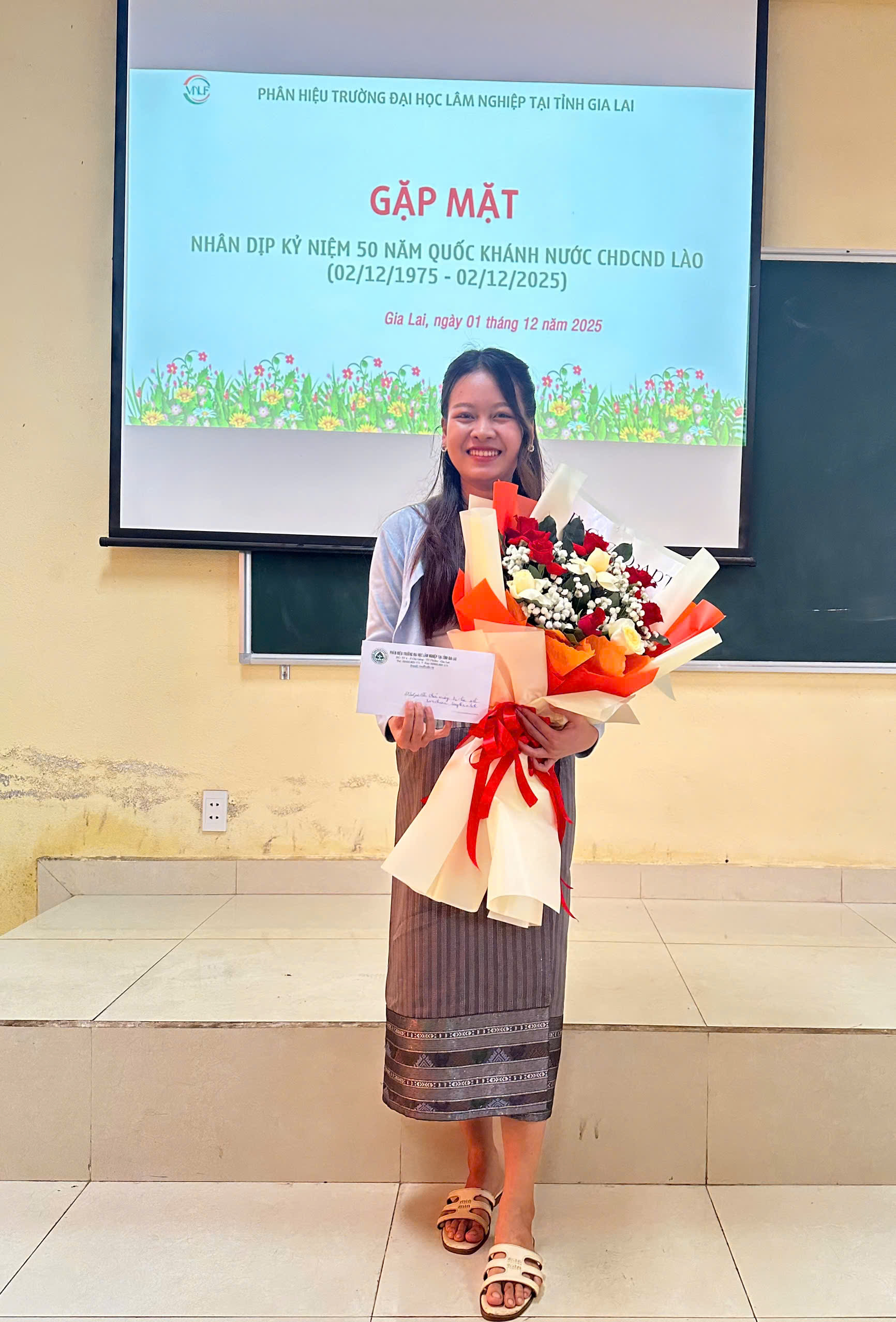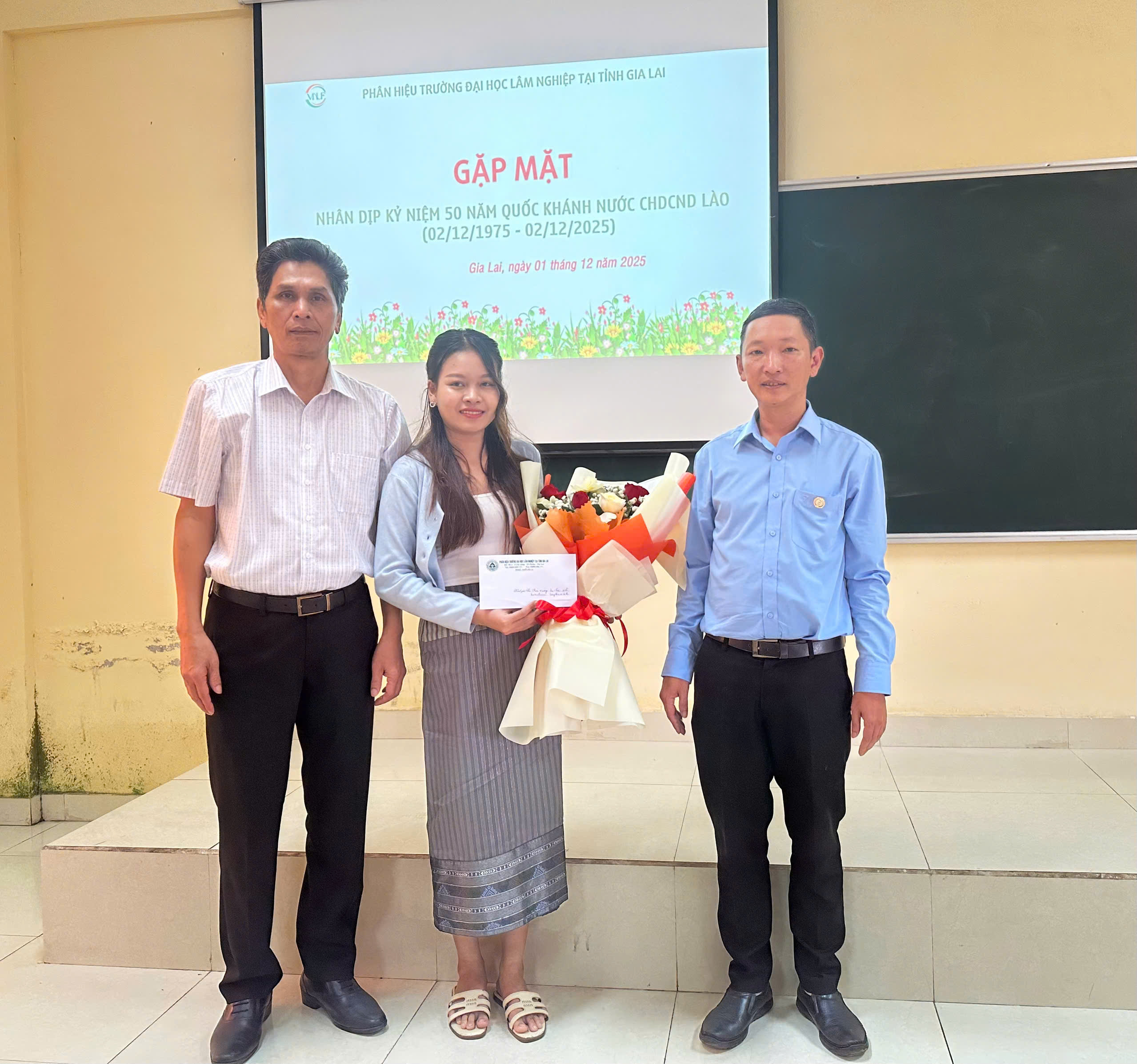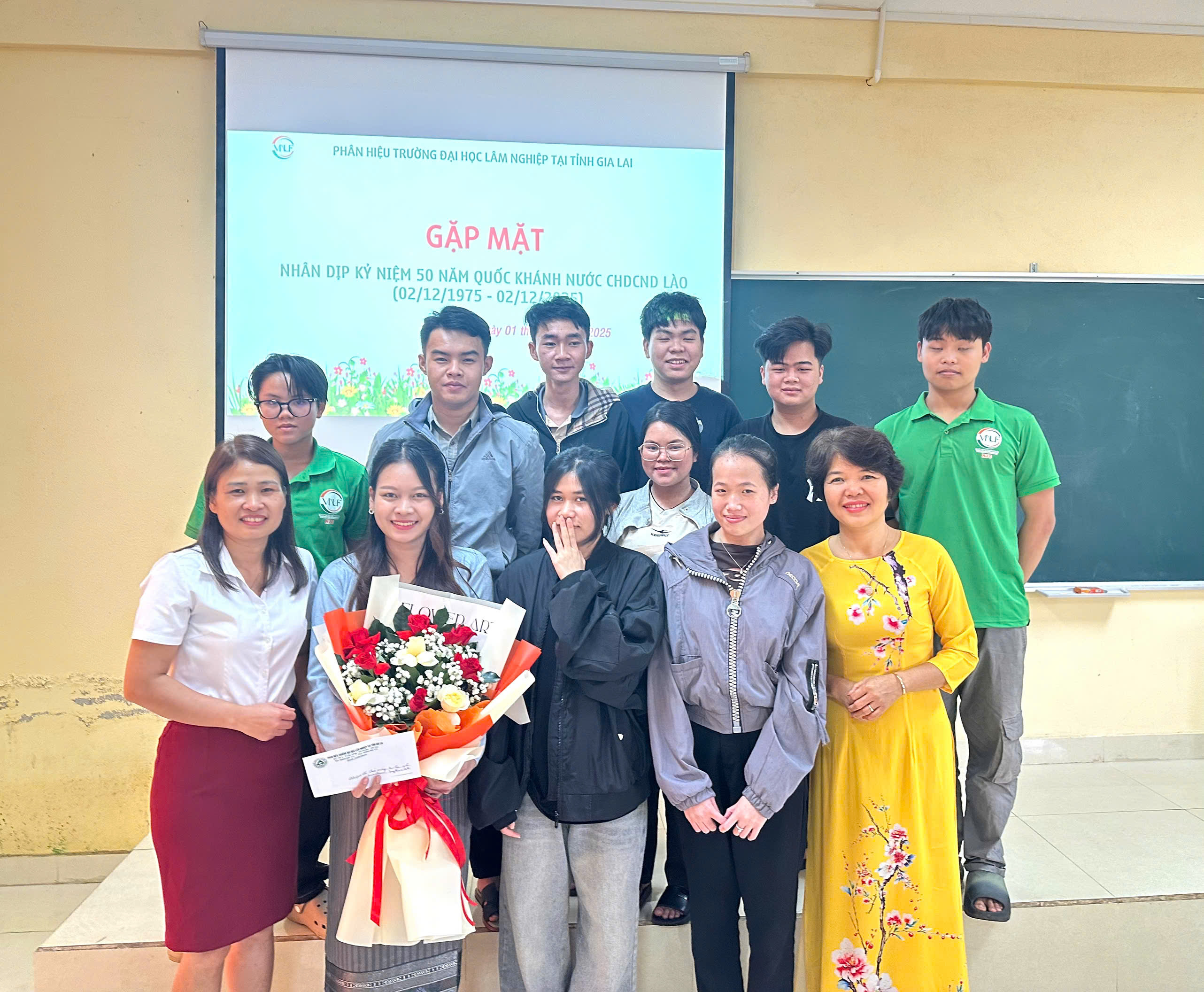 Ngày 01/12/2025, nhân Kỷ niệm 50 năm Quốc khánh nước CHDCND Lào (02/12/1975 – 02/12/2025), Phân hiệu Trường Đại học Lâm nghiệp tại tỉnh Gia Lai đã tổ chức buổi gặp mặt thân mật nhằm động viên và chia sẻ niềm vui cùng lưu học sinh Lào đang học tập tại Phân hiệu. Tại chương trình, Phân hiệu đã tặng hoa và phần quà ý nghĩa, thể hiện tình cảm chân thành và sự quan tâm sâu sắc đối với các em.