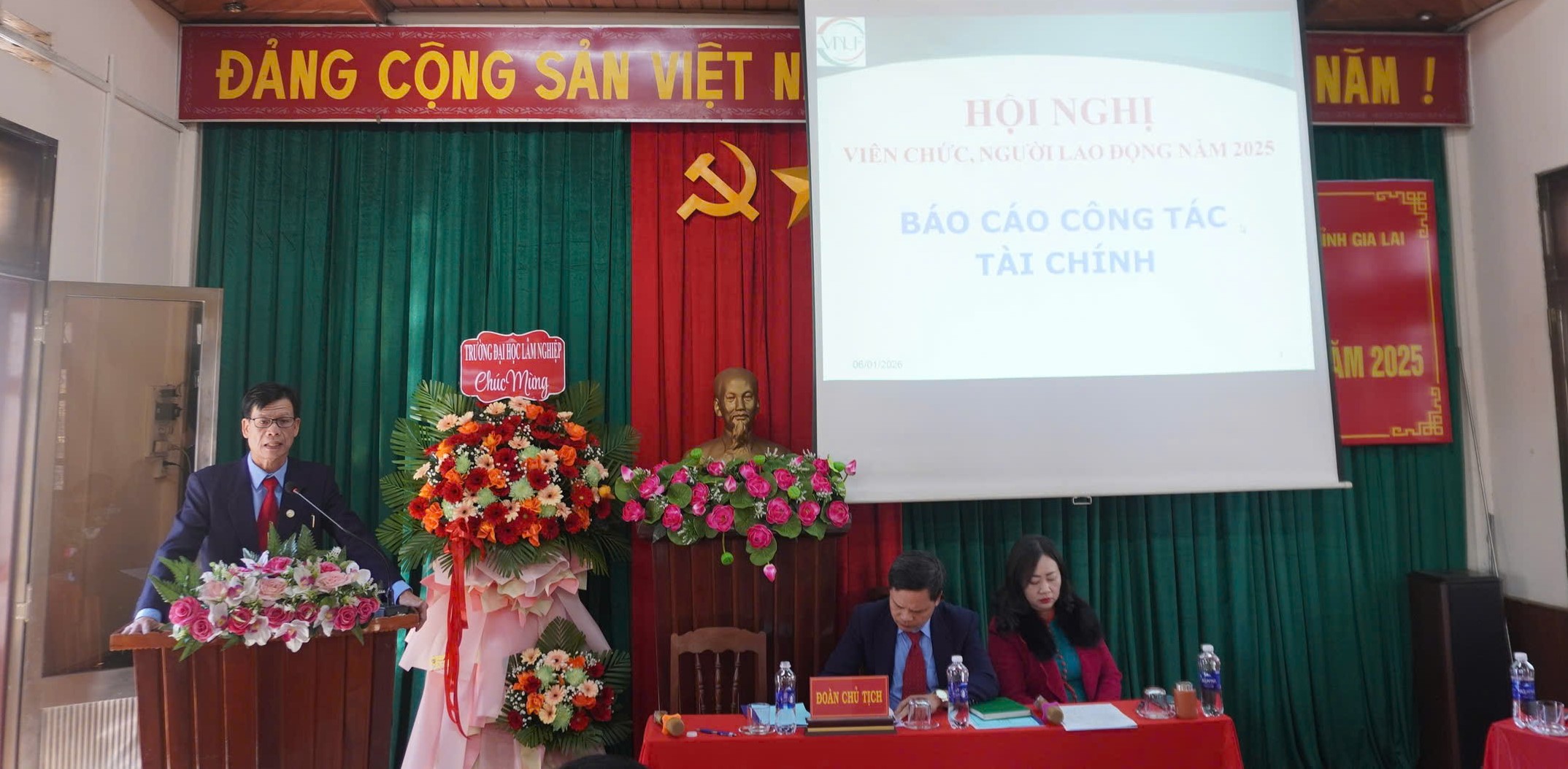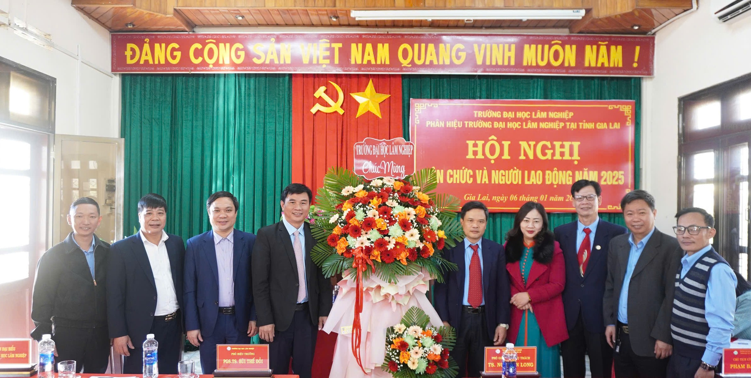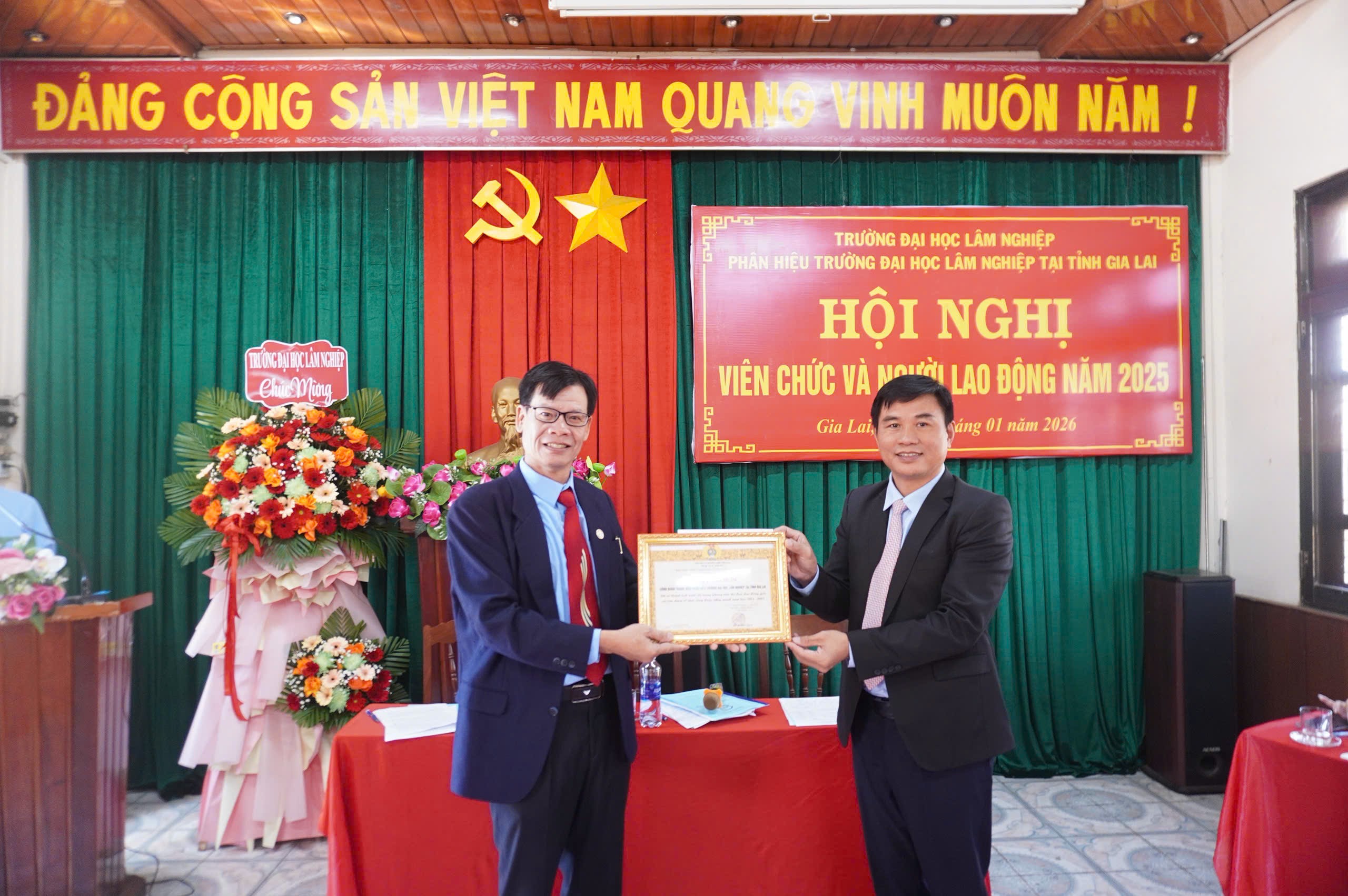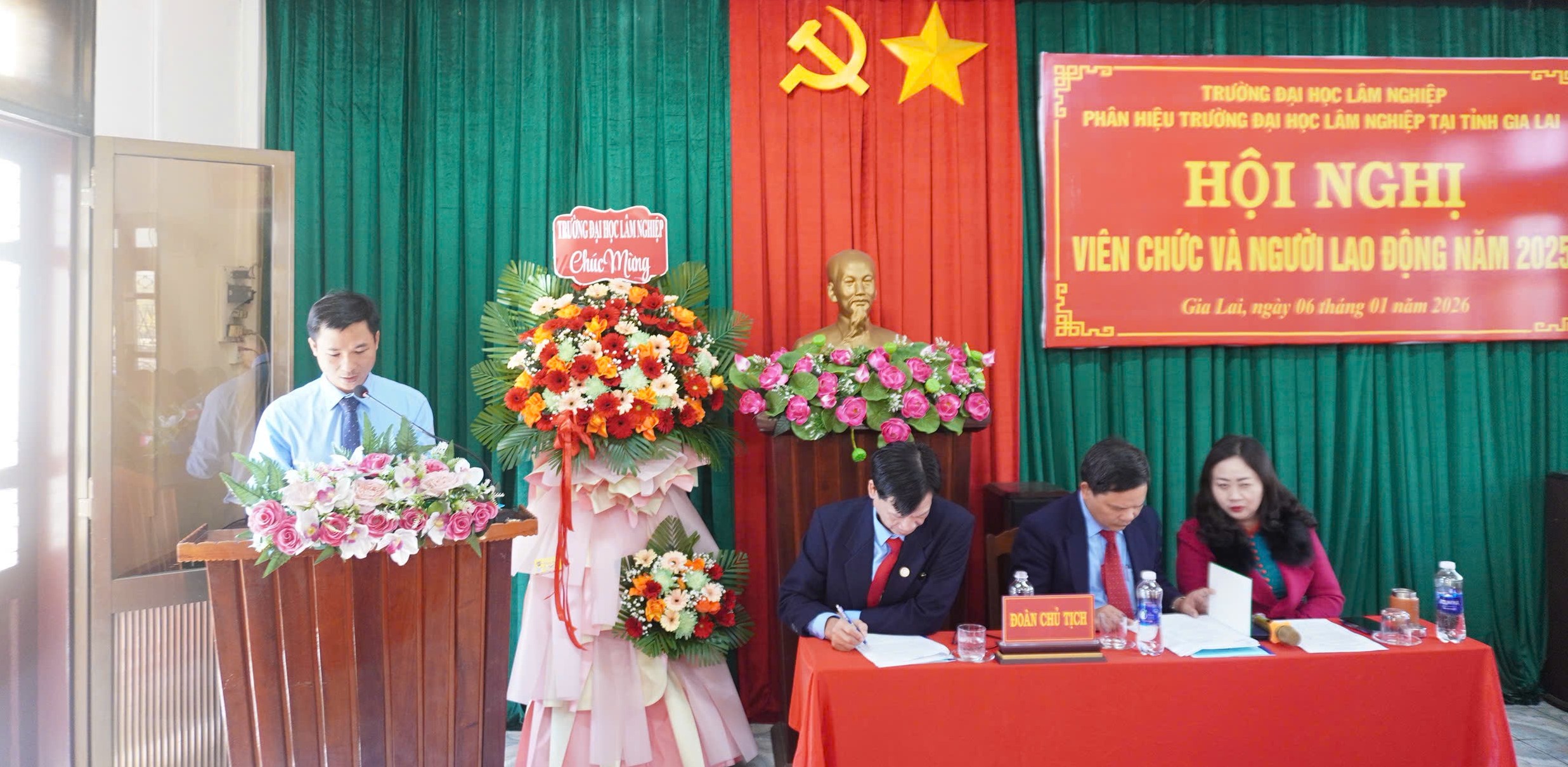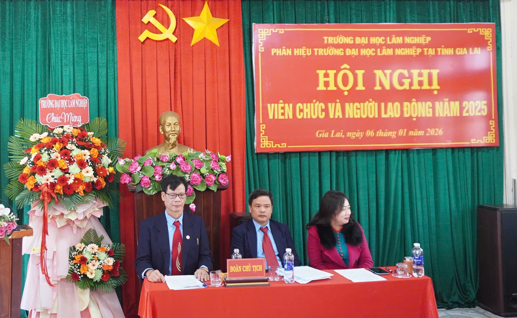 Ngày 06/01/2026, Phân hiệu Trường Đại học Lâm nghiệp tại tỉnh Gia Lai (Phân hiệu) đã long trọng tổ chức Hội nghị viên chức (VC), người lao động (NLĐ) năm 2025. Hội nghị là dịp quan trọng để nhìn lại một năm đầy nỗ lực với những kết quả đáng ghi nhận, đồng thời thảo luận và thông qua những phương hướng, nhiệm vụ trọng tâm cho năm 2026, mở ra chương mới trong hành trình phát triển của Phân hiệu.