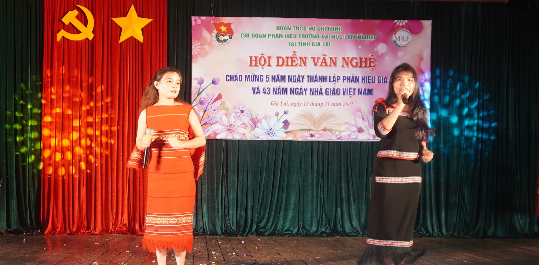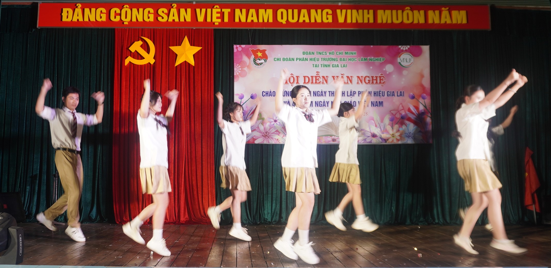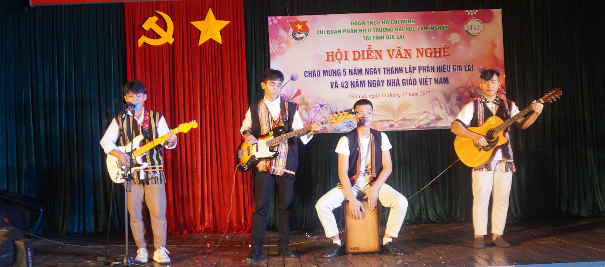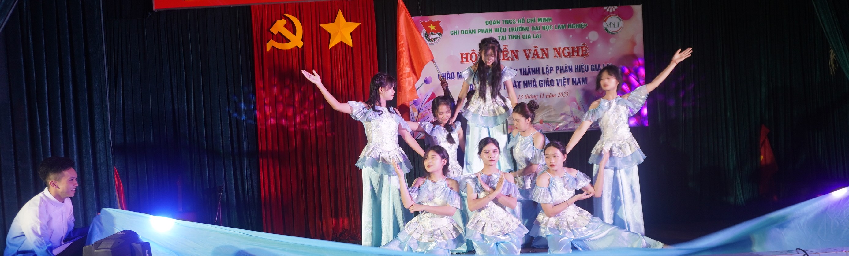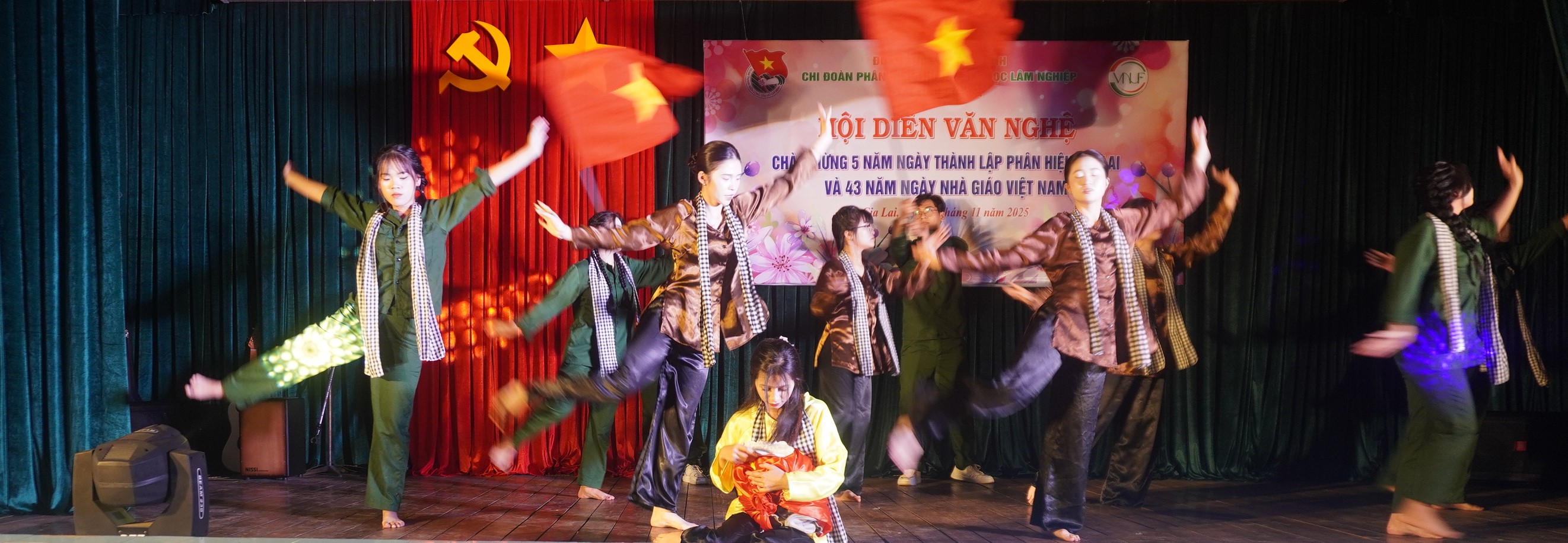 Ngày 13/11/2025, Chi đoàn Phân hiệu Trường Đại học Lâm nghiệp tại tỉnh Gia Lai long trọng tổ chức Hội diễn văn nghệ chào mừng Kỷ niệm 5 năm thành lập Phân hiệu Trường Đại học Lâm nghiệp tại tỉnh Gia Lai (2020-2025) và 43 năm ngày Nhà giáo Việt Nam (20/11/1982-20/11/2025). Đến tham dự và cổ vũ cho chương trình có các thầy trong Ban Lãnh đạo Phân hiệu, quý thầy cô giáo, viên chức, người lao động cùng đông đảo sinh viên Phân hiệu. Sự hiện diện của quý đại biểu, quý thầy cô và các bạn sinh viên đã góp phần làm nên không khí trang trọng, ấm áp và đầy ý nghĩa cho Hội diễn.