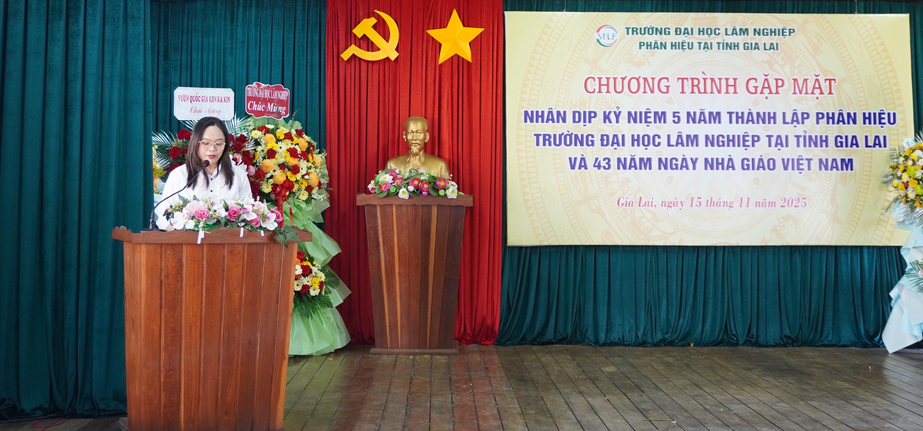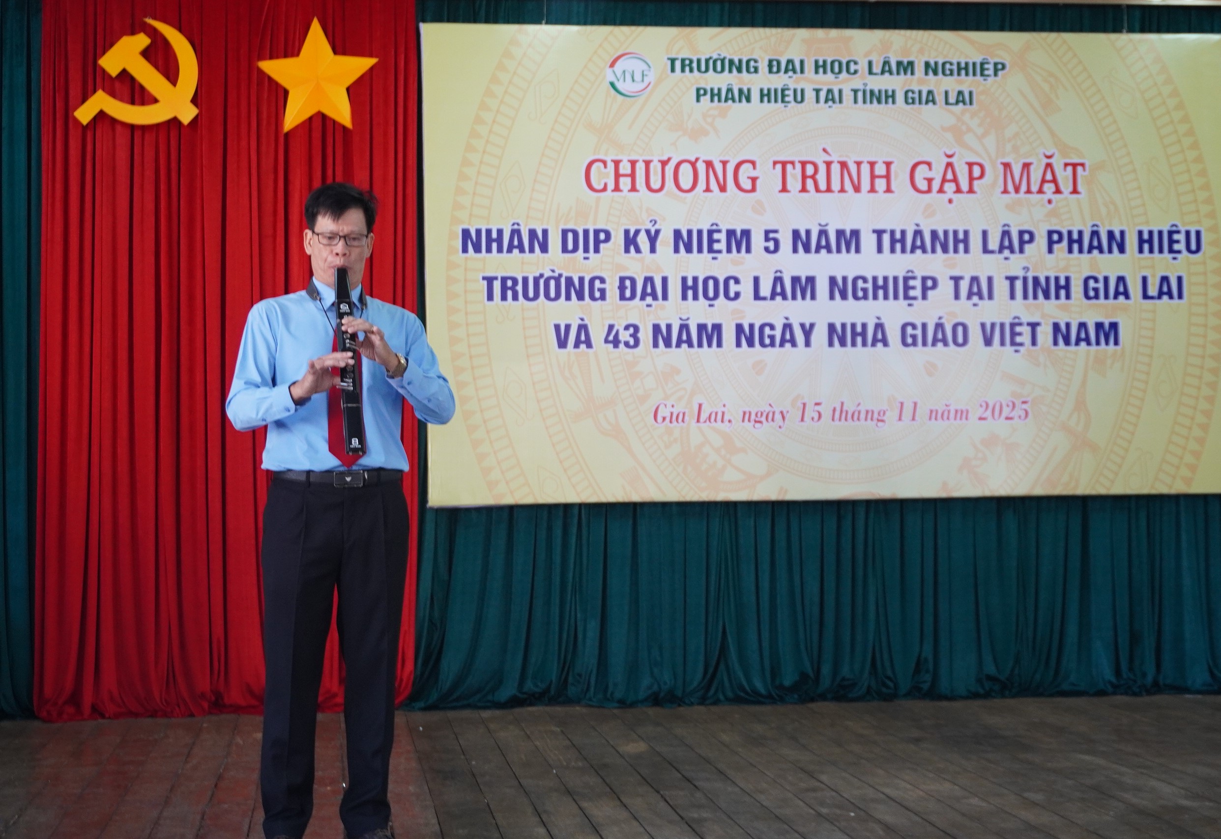 Ngày 15/11/2025, Phân hiệu Trường Đại học Lâm nghiệp tại tỉnh Gia Lai đã long trọng tổ chức Chương trình gặp mặt, tri ân nhân dịp Kỷ niệm 05 năm thành lập Phân hiệu Trường Đại học Lâm nghiệp tại tỉnh Gia Lai (2020 - 2025) và Kỷ niệm 43 năm ngày Nhà giáo Việt Nam (20/11/1982 - 20/11/2025).