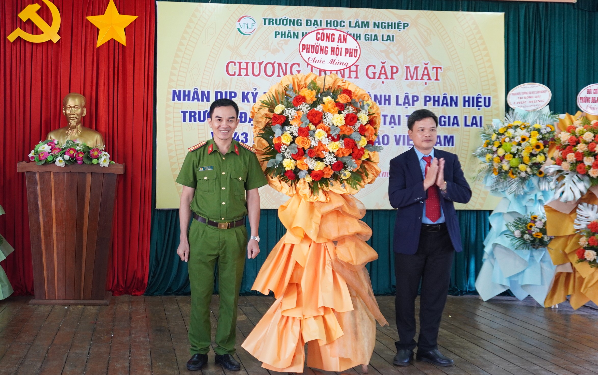 Tiếp nối chương trình, các cơ quan, đơn vị đối tác đã lần lượt tặng hoa chúc mừng, thể hiện mối quan hệ hợp tác tốt đẹp, bền chặt giữa Phân hiệu và các đơn vị trên địa bàn tỉnh Gia Lai cũng như khu vực Tây Nguyên. Những bó hoa tươi thắm gửi gắm niềm tin và sự đồng hành trong chặng đường phát triển tiếp theo.