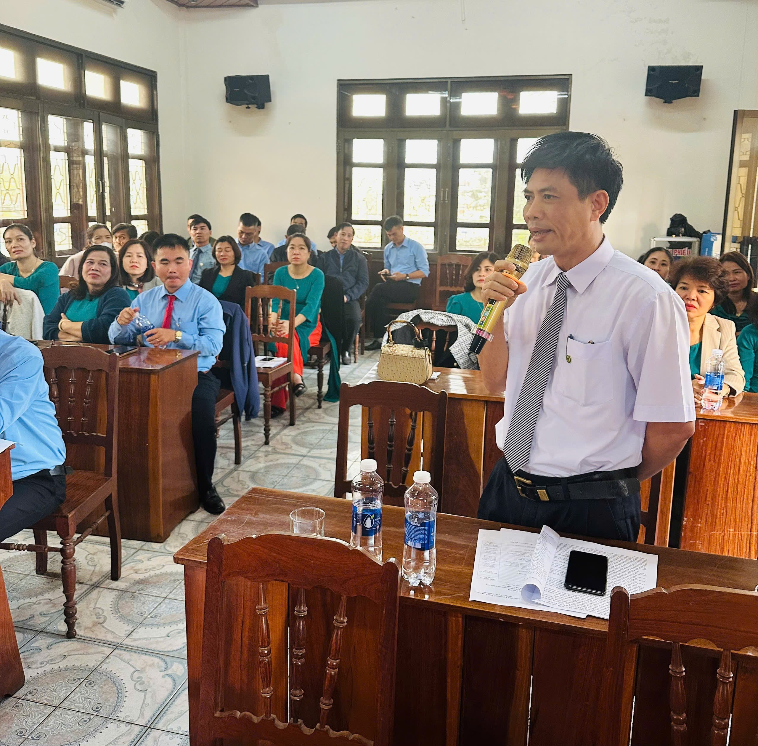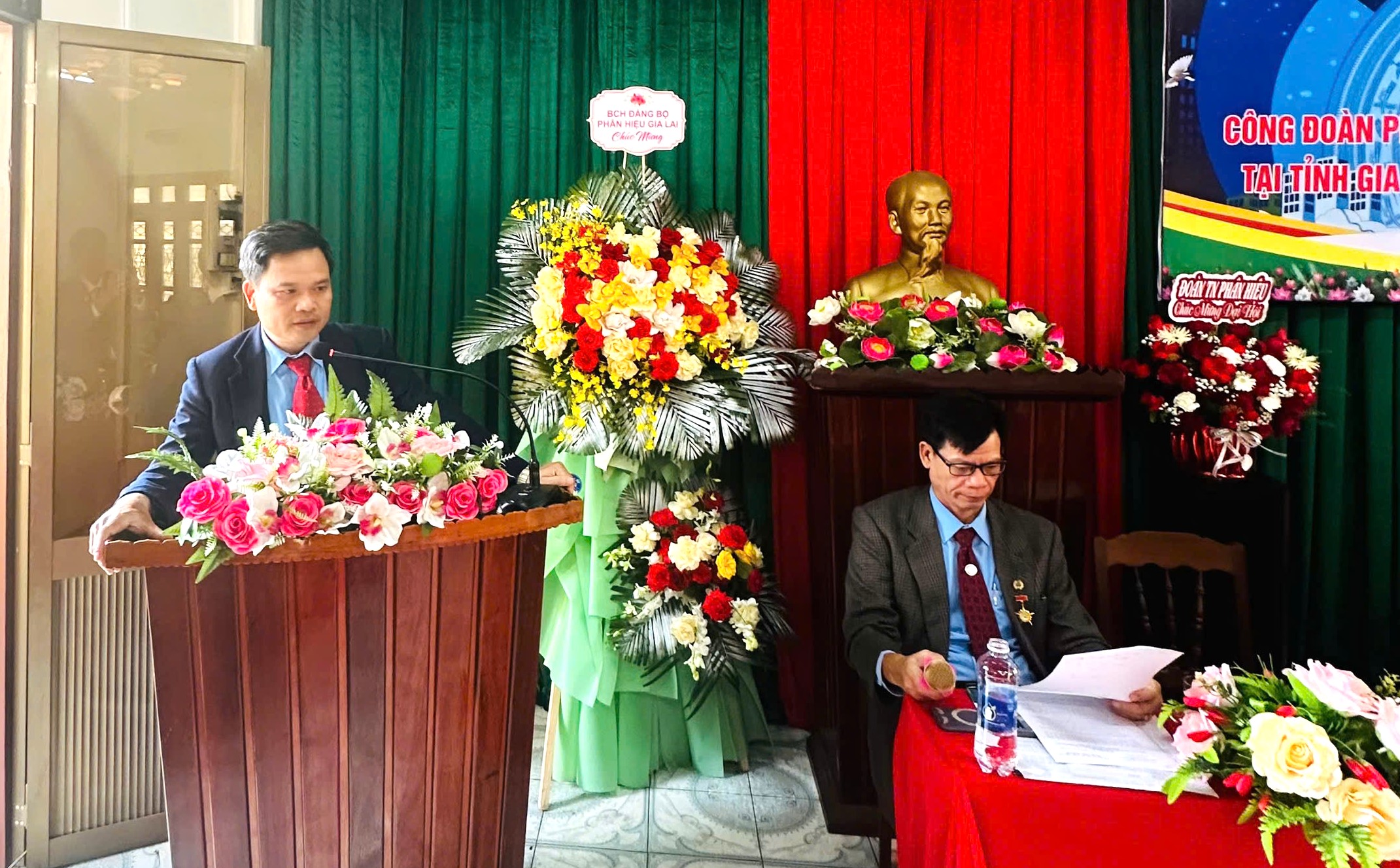 Đồng chí Phạm Bá Toả, Chủ tịch Công đoàn Phân hiệu trình bày Báo cáo
