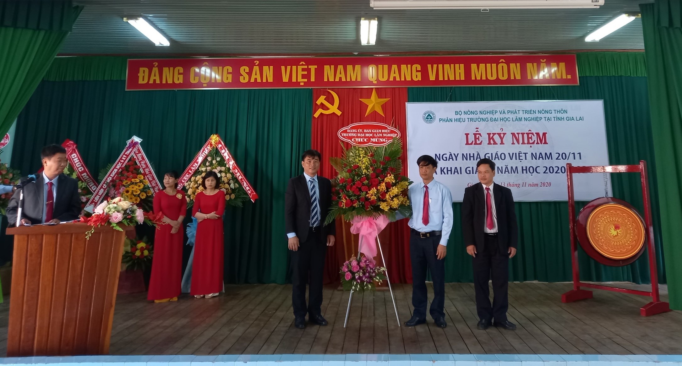 Mở đầu Lễ Kỷ niệm, PGS.TS Bùi Thế Đồi - Uỷ viên Ban thường vụ, Phó Hiệu trưởng Trường ĐHLN, kiêm Giám đốc Phân hiệu ĐHLN tại tỉnh Gia Lai đọc diễn văn chào mừng ngày Nhà giáo Việt Nam 20/11. Giám đốc đã thay mặt Phân hiệu bày tỏ sự kính trọng và lòng biết ơn sâu sắc đối với các thế hệ thầy, cô giáo đã hết lòng vì sự nghiệp đào tạo của Trường trung cấp Lâm nghiệp Tây Nguyên trước đây và Phân hiệu Trường ĐHLN tại tỉnh Gia Lai hiện nay.