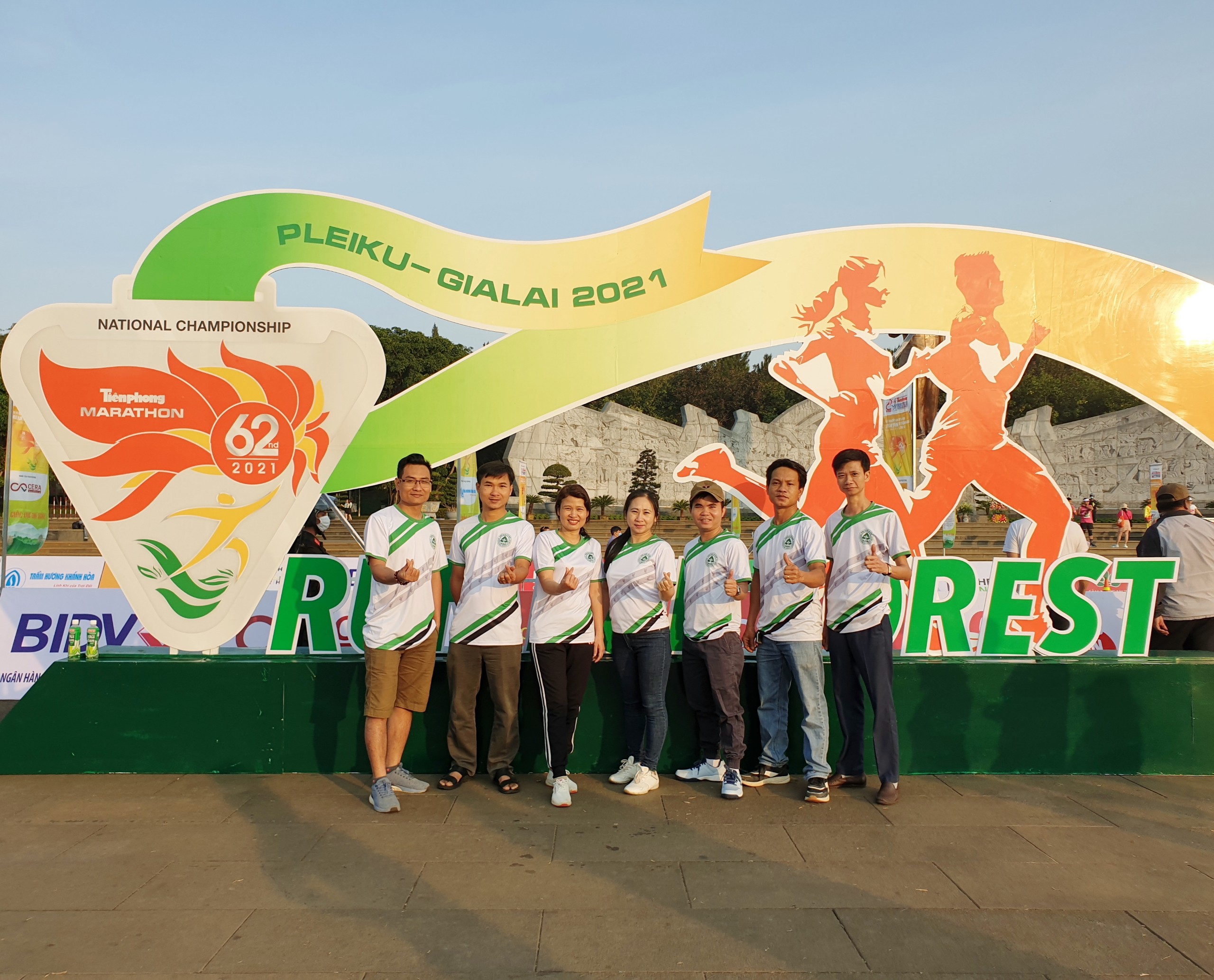 Tham gia hưởng ứng Giải Marathon có CBGV, SV của Phân hiệu Trường ĐHLN tại tỉnh Gia Lai đến cổ vũ và cùng chạy phong trào.... Trong đó có cựu SV Trường ĐH Lâm nghiệp Đỗ Phú Tiến - K59 CTTT hiện đang công tác tại Dự án Trường Sơn Xanh tỉnh Quảng Nam. Em tham gia chạy cự ly 21 km. Em cũng vừa được nhận học bổng ERASMUS học Chương thạc sĩ tại Châu Âu (Phần Lan và Đức).