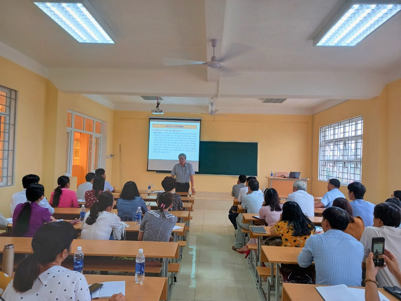 Thời gian tập huấn diễn ra trong 2 ngày 19, 20 tháng 4 năm 2021 với sự tham gia của 47 giảng viên và viên chức. NGND. GS. TS Phạm Văn Chương đã cung cấp một lượng kiến thức nhất định, phù hợp với khuôn khổ tập huấn, nhưng đảm bảo đầy đủ những kiến thức cần và đủ để người tham gia tập huấn hiểu sâu thêm về các phương pháp NCKH, đặc biệt là các đề tài nghiên cứu cấp Trường, Tỉnh và Bộ.