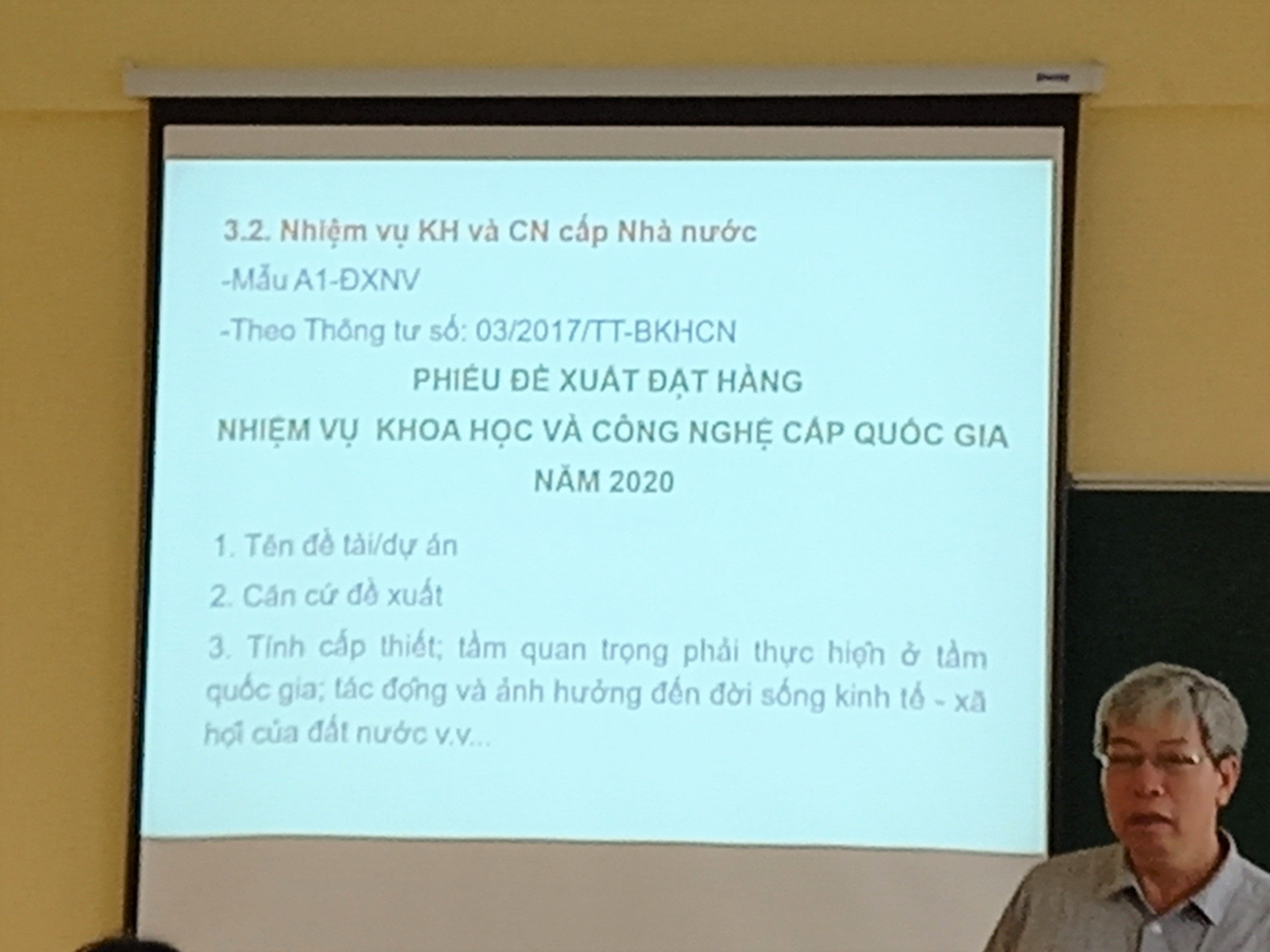 Tại buổi tập huấn, NGND. GS. TS Phạm Văn Chương đã trình bày khái quát về vai trò của NCKH và nhấn mạnh tầm quan trọng của việc xác định vấn đề nghiên cứu như: bảo vệ môi trường sinh thái, cải thiện hoạt động chế biến, xuất khẩu gỗ và lâm sản… góp phần nâng cao đời sống vật chất, tinh thần cho người dân; trong đó cần lưu ý tính logic giữa việc xác định mục tiêu nghiên cứu phù hợp với việc chọn phương pháp và dự đoán kết quả nghiên cứu.