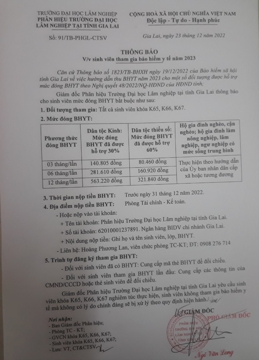 Thông báo sinh viên tham gia bảo hiểm y tế năm học 2023