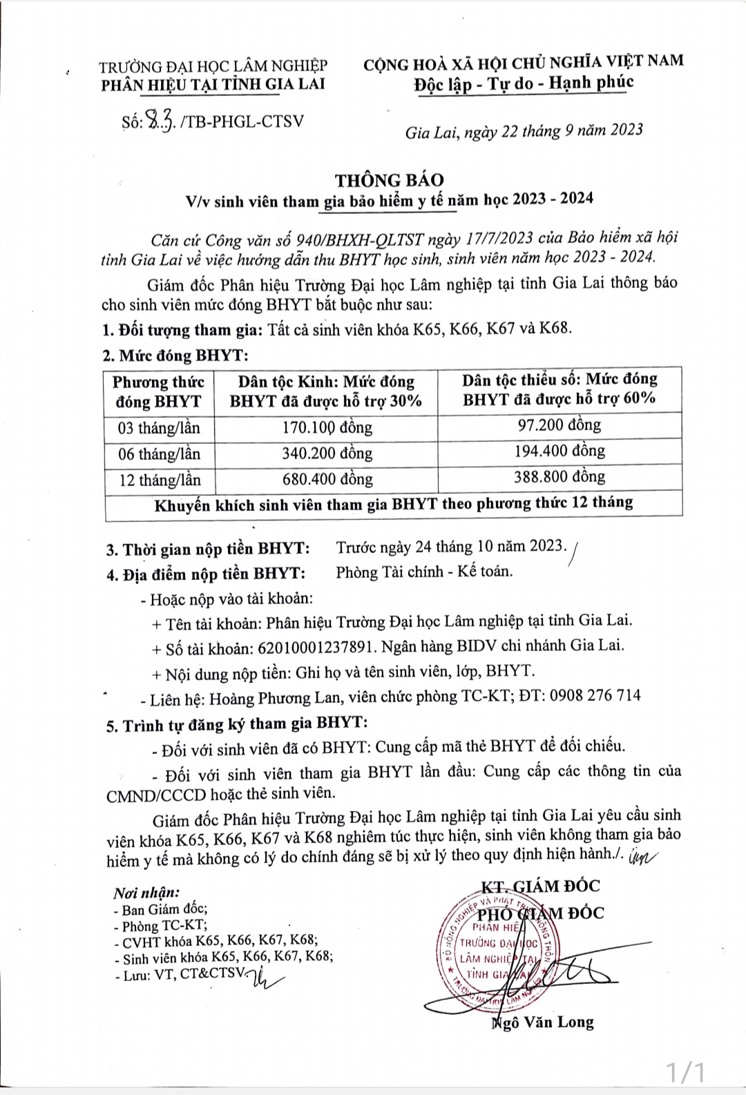 Thông báo về việc sinh viên tham gia bảo hiểm y tế năm học 2023 - 2024
