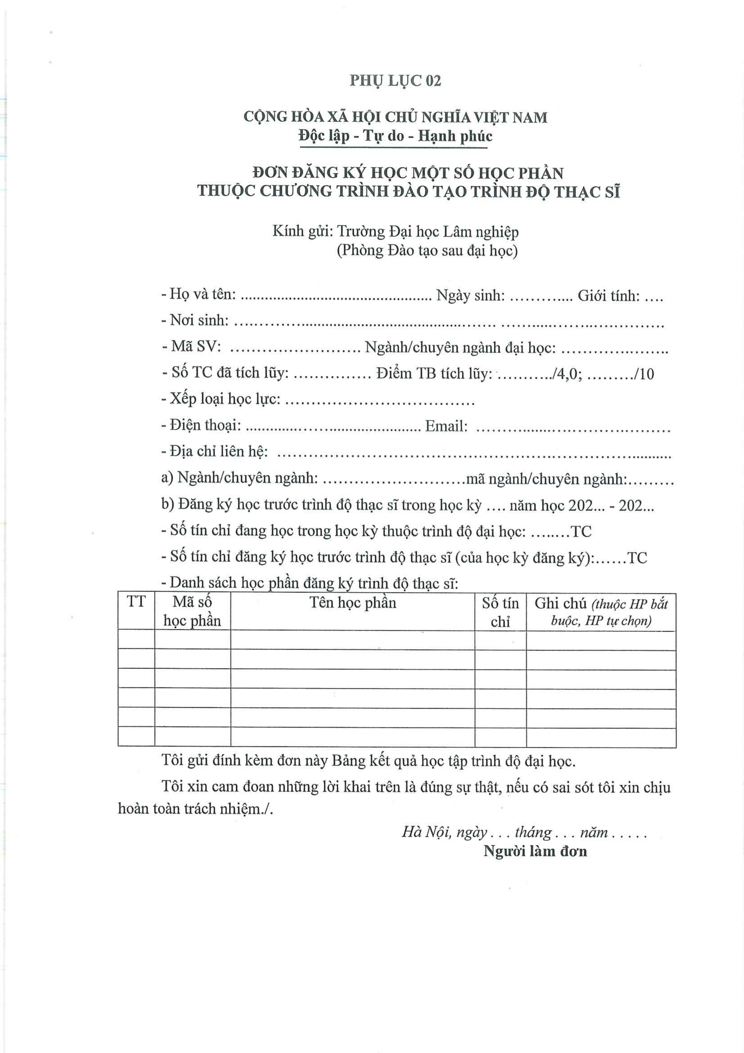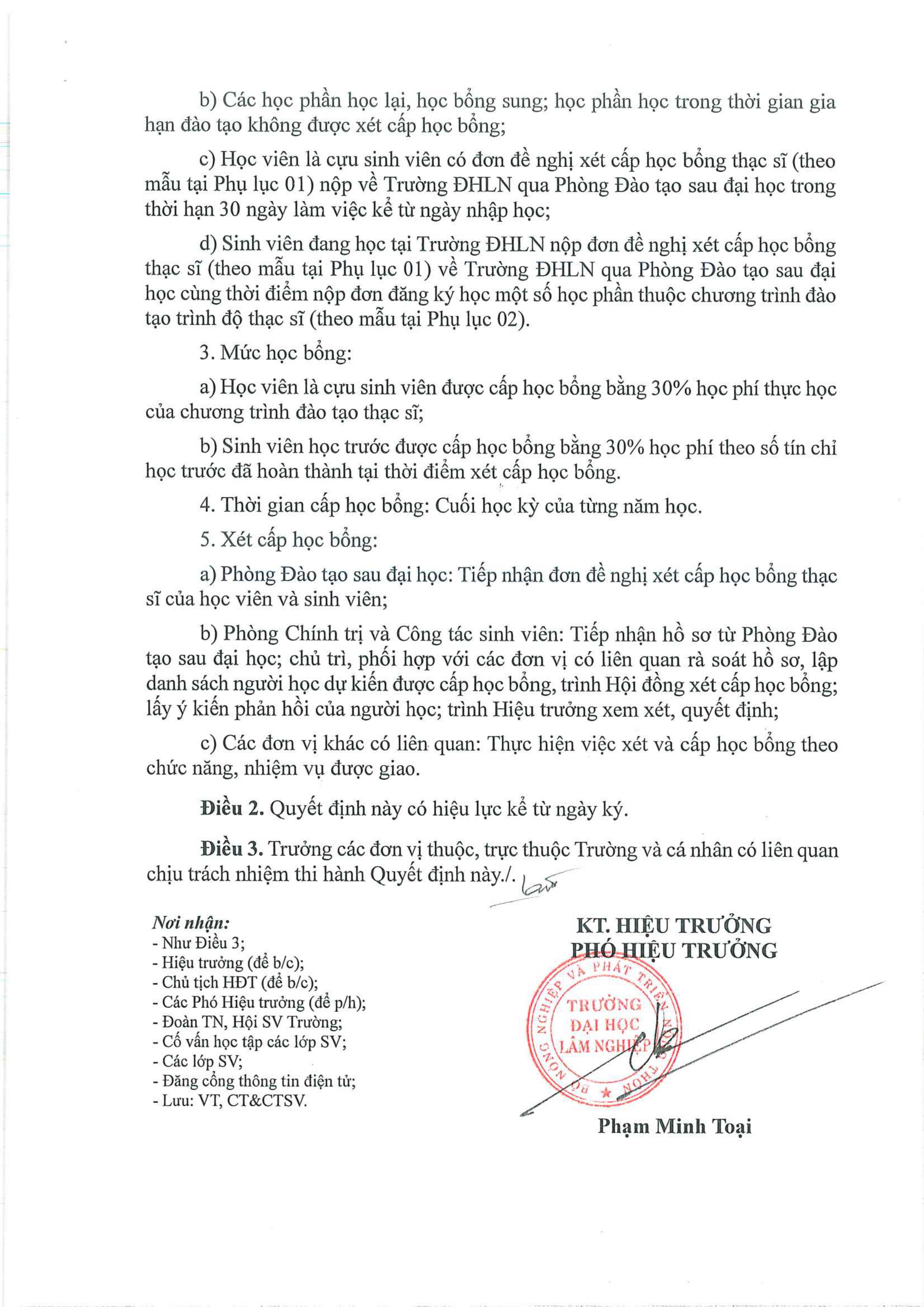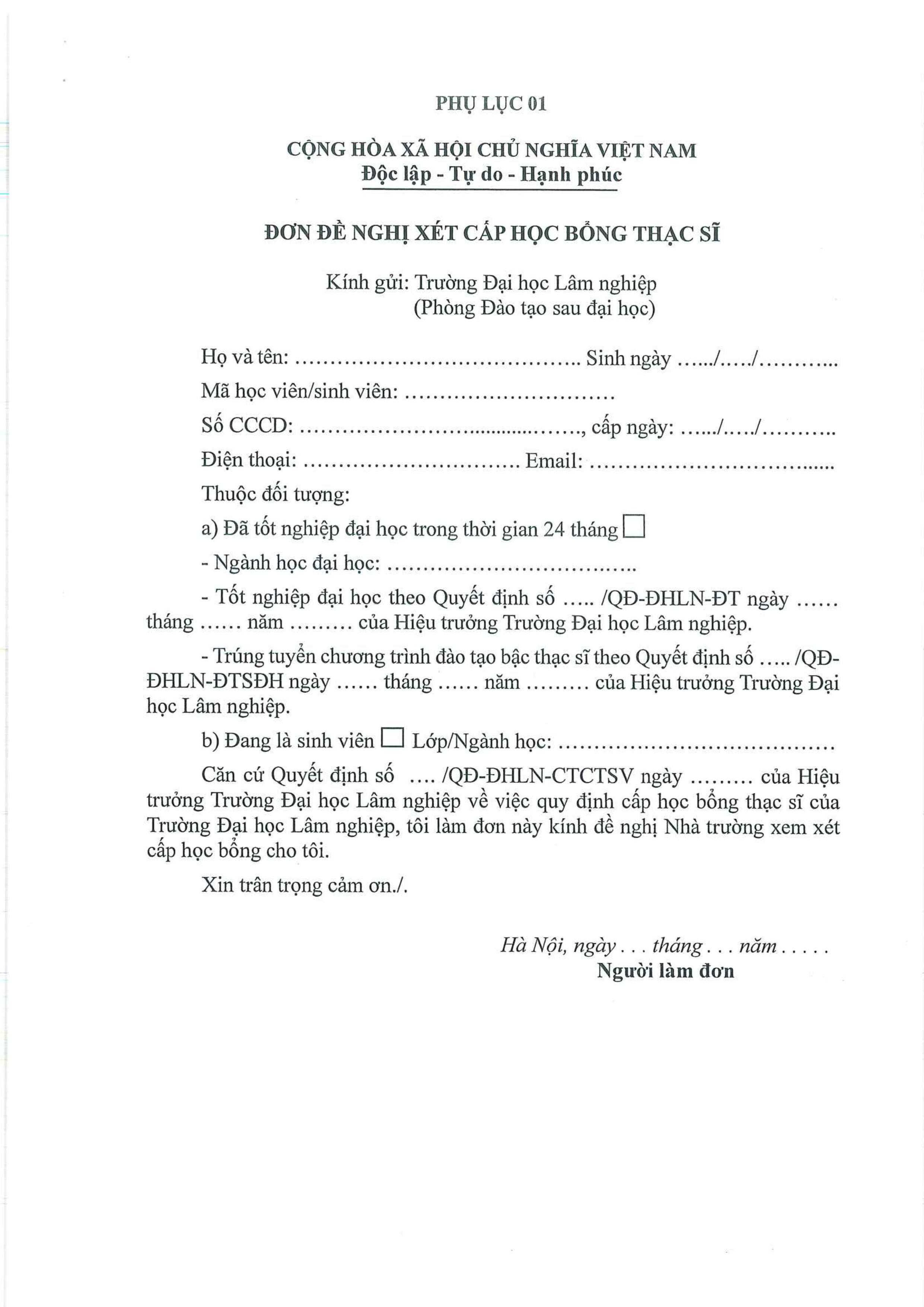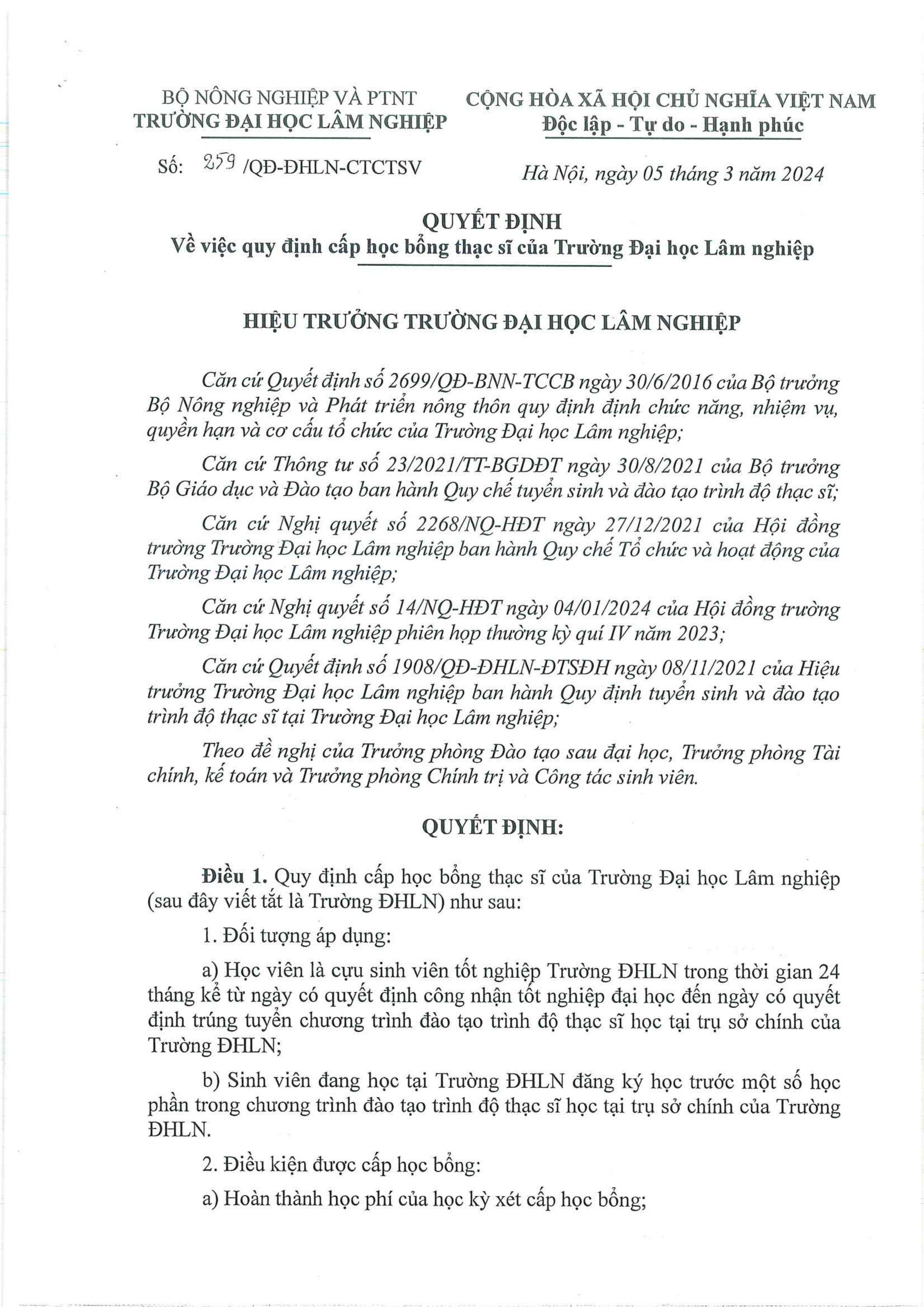 Quy định cấp học bổng thạc sĩ của Trường Đại học Lâm nghiệp